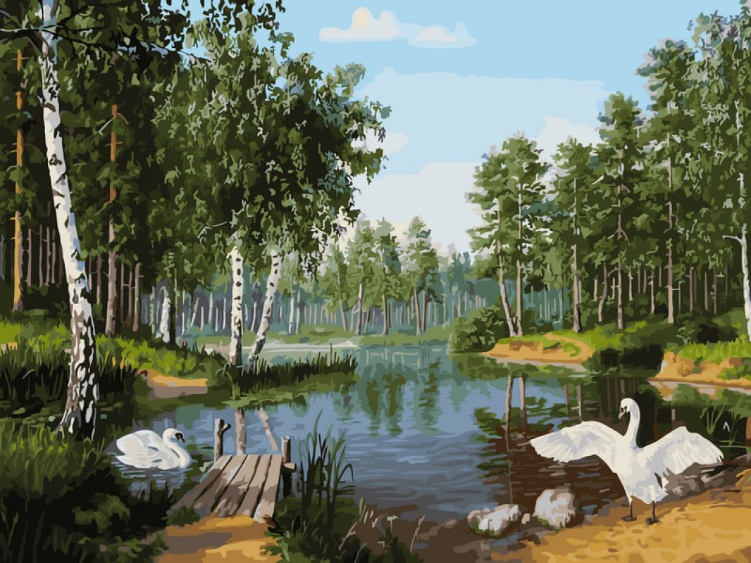 Набор для творчества Живопись на холсте: 1229-AS Пара лебедей